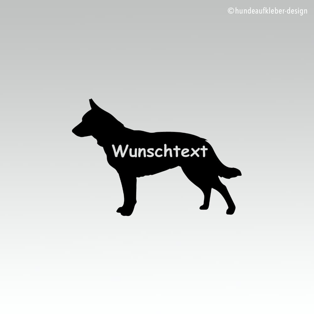 Australian Cattle Dog Autoaufkleber mit Wunschtext, wie z.B.: der Name eures Hundes. Der Wunschtext wird, computergesteuert, aus dem Aufkleber mit "ausgeschnitten". Der Text wird also die Farbe des Untergrundes haben wo ihr den Aufkleber verklebt. Schreibt einfach euren Wunschtext in das dafür vorgesehene Feld unter der Farbauswahl. Wenn Ihr keinen Namen angebt wird euch nur der Hundeumriss geliefert.