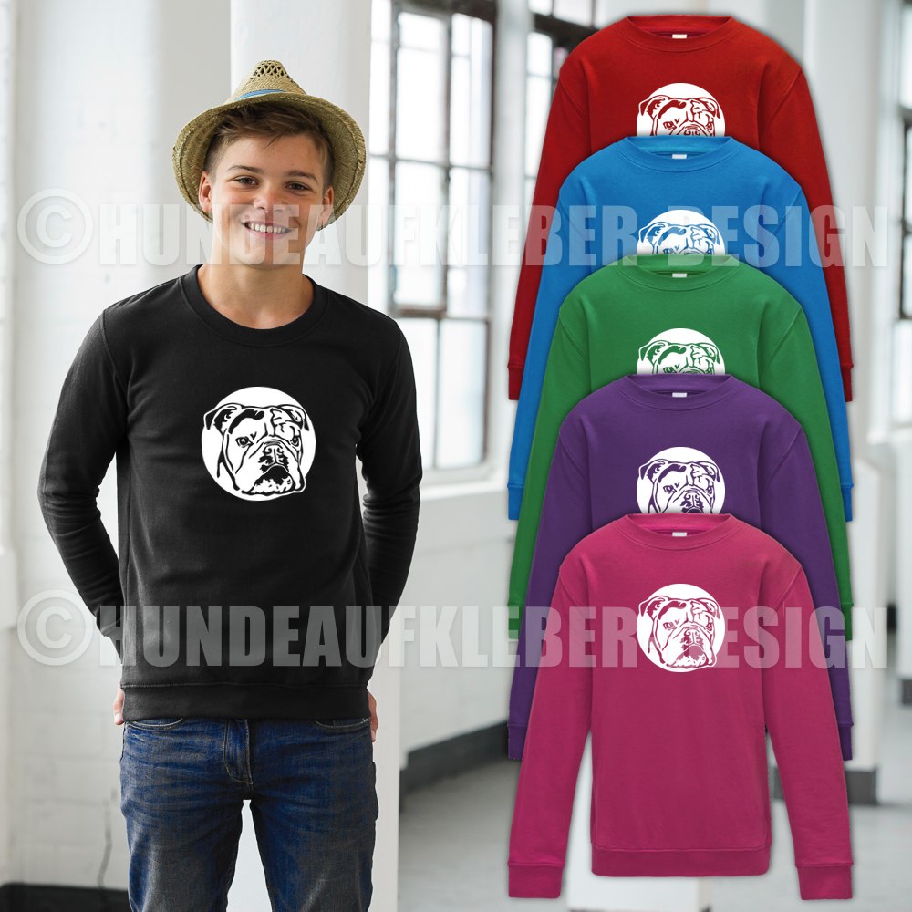 Niedlicher Kinderpulli mit Englische Bulldogge Hundemotiv bedruckt. Damit der Pullover passt beachtet bitte die Maßangaben in der Tabelle weiter unten und vergleicht diese am besten mit einem Pullover von euch zuhause!