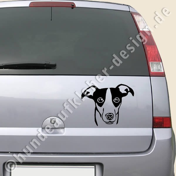 Whippet Kopf Aufkleber erhältlich als Hunde Wandtattoo zur Dekoration des Wohnbereiches oder als wetterfesten Hunde Autoaufkleber, für alle glatten Oberflächen im Aussenbereich.